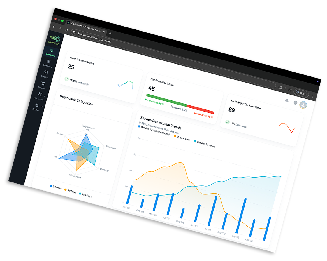 Shopflo connects seamlessly with your existing systems while delivering powerful AI tools that give technicians full context, improve repair accuracy, and support consistent service excellence.
